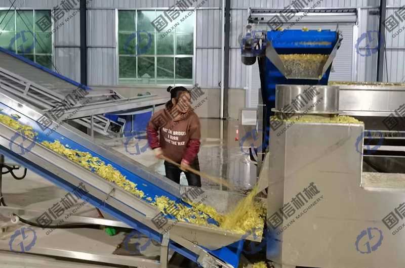 在貴州惠水縣,劉老板自己開設了生姜加工帶烘干企業,每天的烘干需求量非常的巨大,但是由于環保政策的影響,燃煤不可用,經過協調后,當地的生物質顆粒正好可以使用,為此,我們向客戶提供了一套可以日處理鮮貨達15噸以上的大型生姜烘干生產線設備。